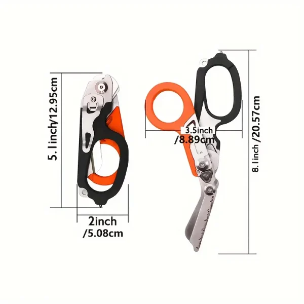 6-in-1 Stainless Steel Emergency Shears – Foldable Trauma Scissors with Strap Cutter & Glass Breaker for Outdoor Camping and Rescue.