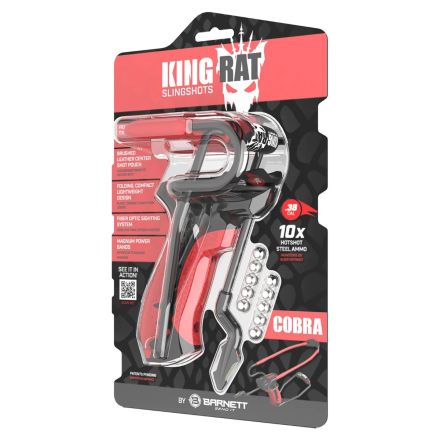 The Cobra slingshot revolutionised slingshot design with increased performance and precision. The unique front stabiliser and sight system reduces vibration, enables better balance and improved accuracy. Compact, lightweight, and comfortable with soft-touch grips, it’s ideal for both adults and youth. Includes target ammo to help you fine-tune your aiming.